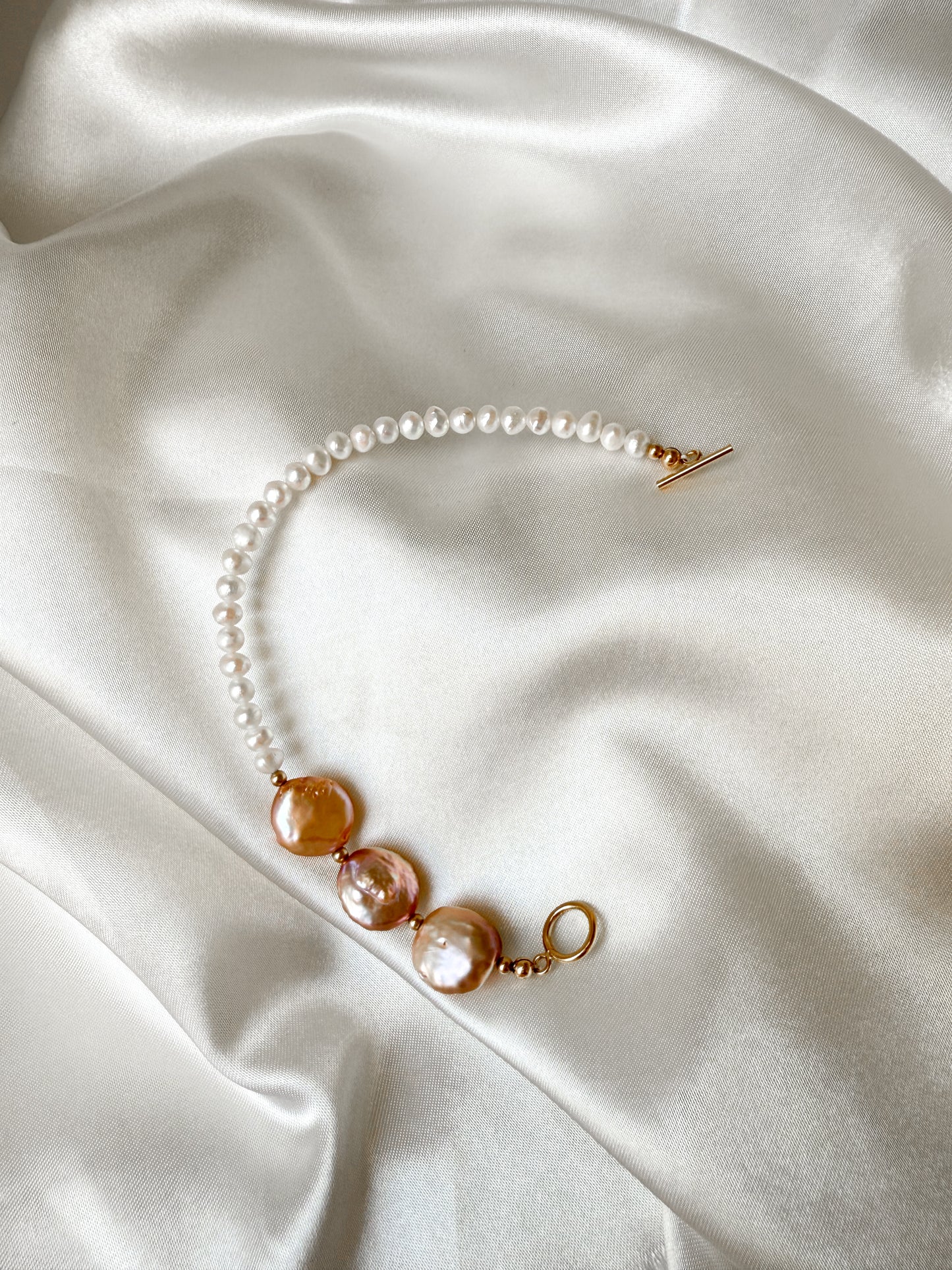 Inspired by sun-kissed shores and the quiet beauty of coastal mornings, The Sandcastle Bracelet captures the essence of timeless grace. Lustrous freshwater pearls meet radiant 14K gold-filled accents in a design that whispers of serenity and strength. Each pearl tells a story of natural beauty, while the golden details evoke the warmth of sunlight dancing on sand.