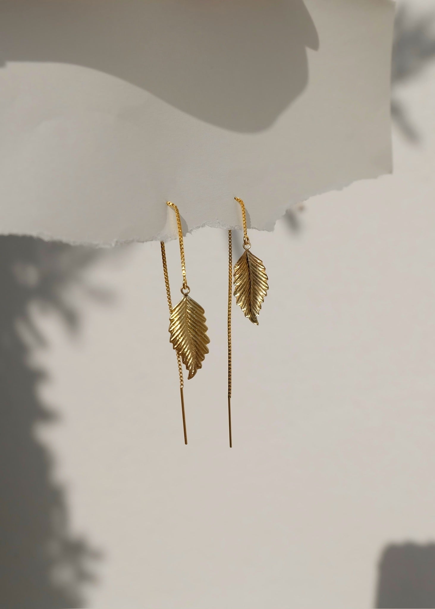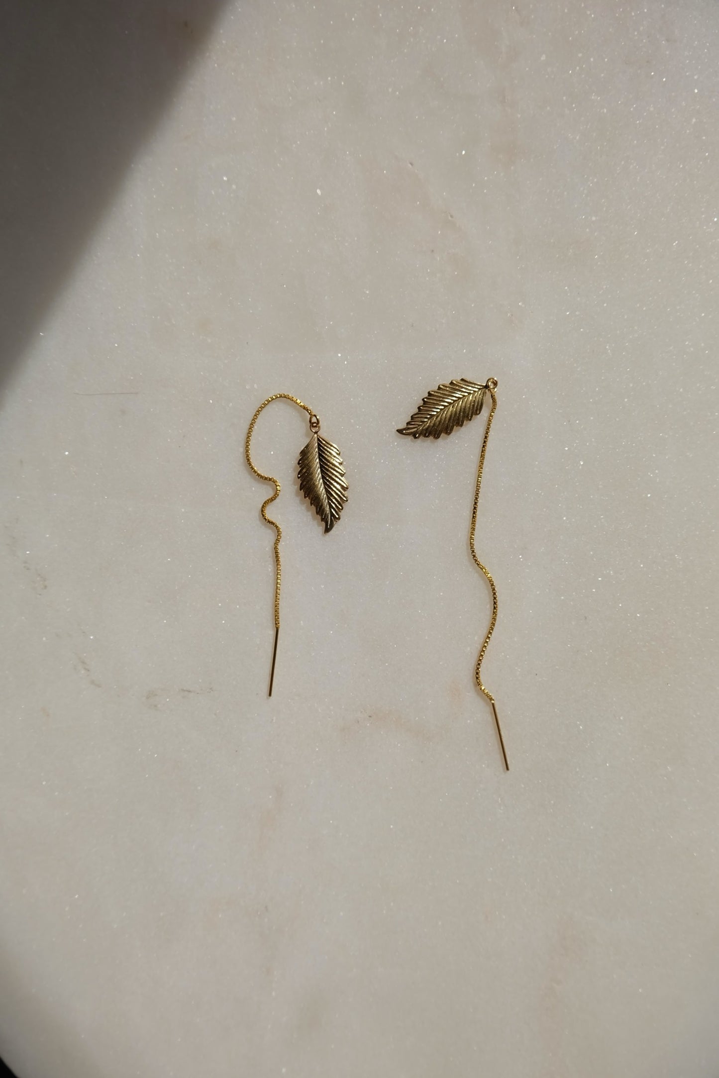 - Features: Botanical-inspired Zz leaf pendants, ear threader design