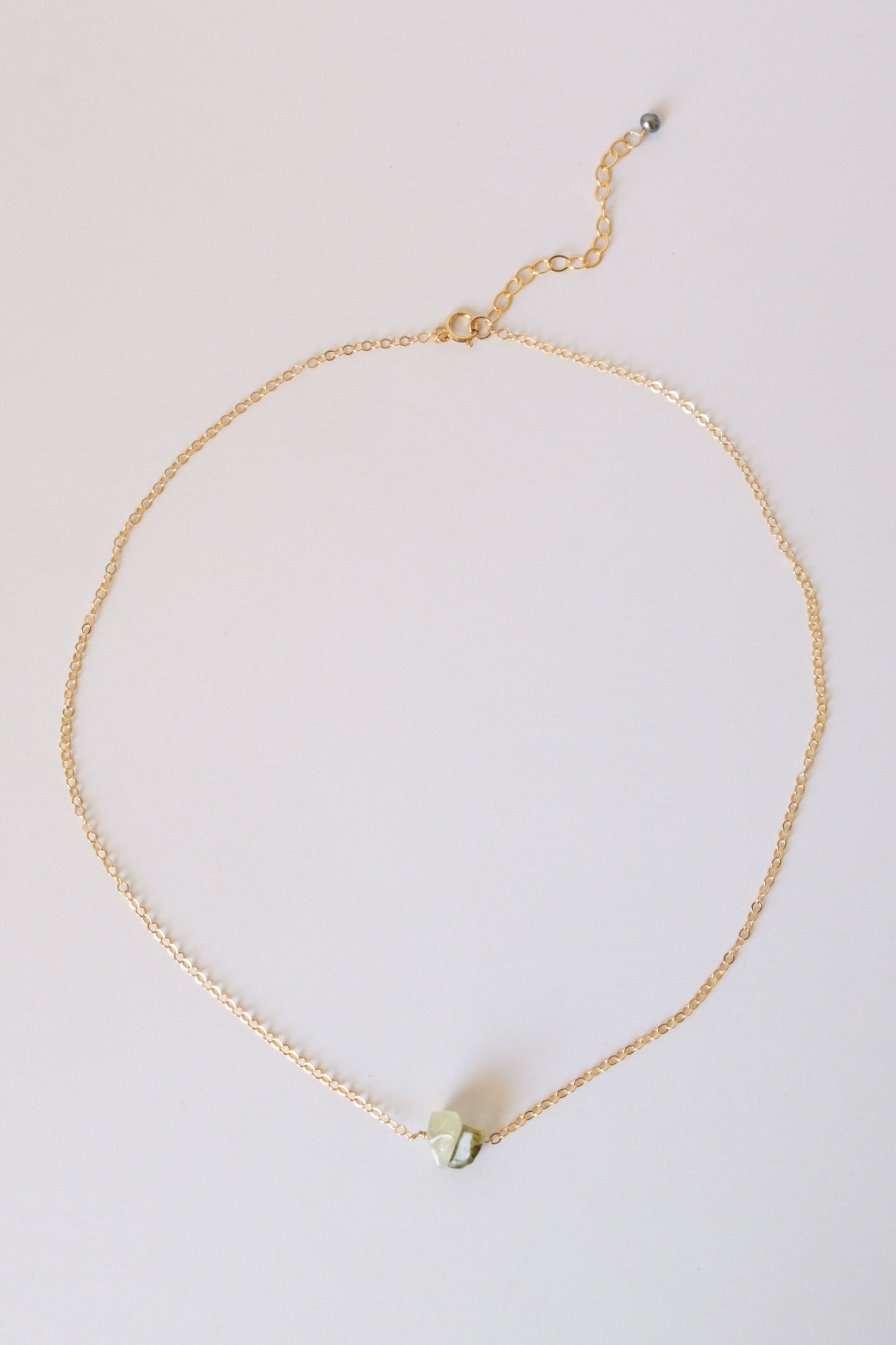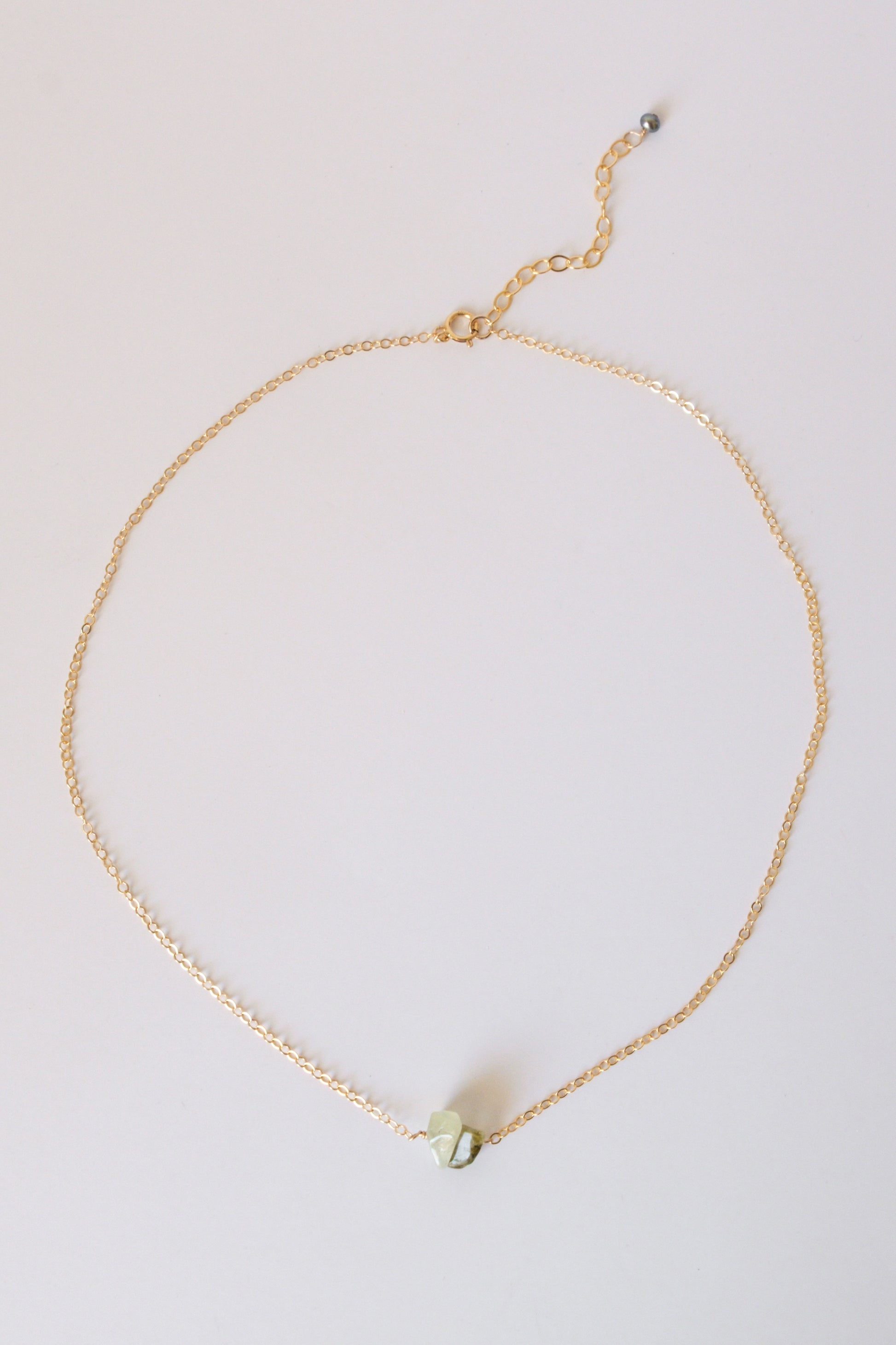 - Features: Luminous green Phrenite stone, delicate chain, hypoallergenic, non-tarnish