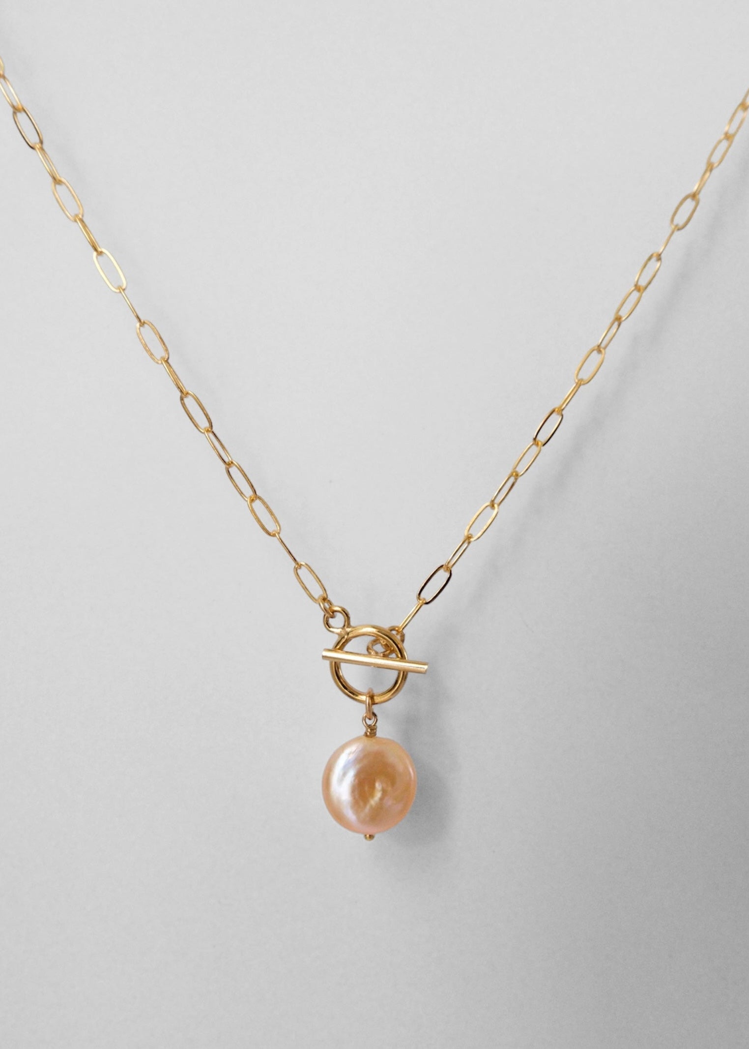 A whisper of the ocean meets refined artistry in this exquisite necklace, where a luminous freshwater pearl becomes both clasp and centerpiece. Handcrafted in radiant 14K Gold-Filled, this minimal yet captivating design celebrates the beauty of simplicity—a delicate chain that fastens with a single pearl, creating an effortless statement of grace. Each piece tells a story of coastal serenity and modern sophistication, inviting you to carry a touch of the sea wherever you wander.