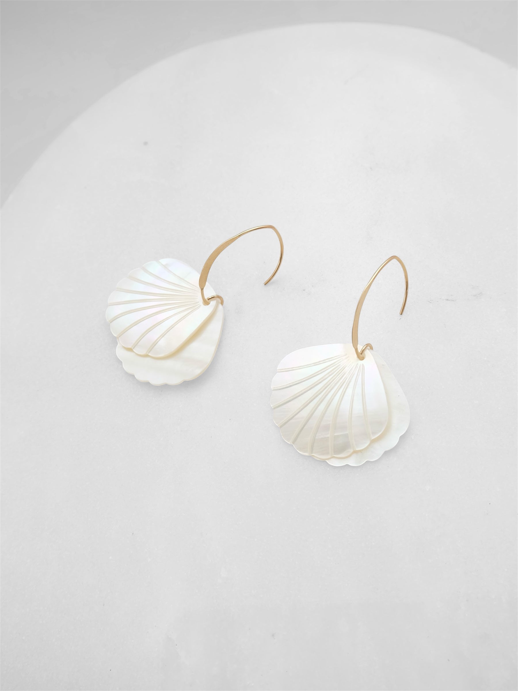 Discover the perfect balance of modern minimalism and natural beauty with the Noa Earrings. These stunning earrings feature lustrous mother-of-pearl shell charms suspended from sleek 14K gold-filled wire, creating a subtle shimmer that catches the light with every movement.