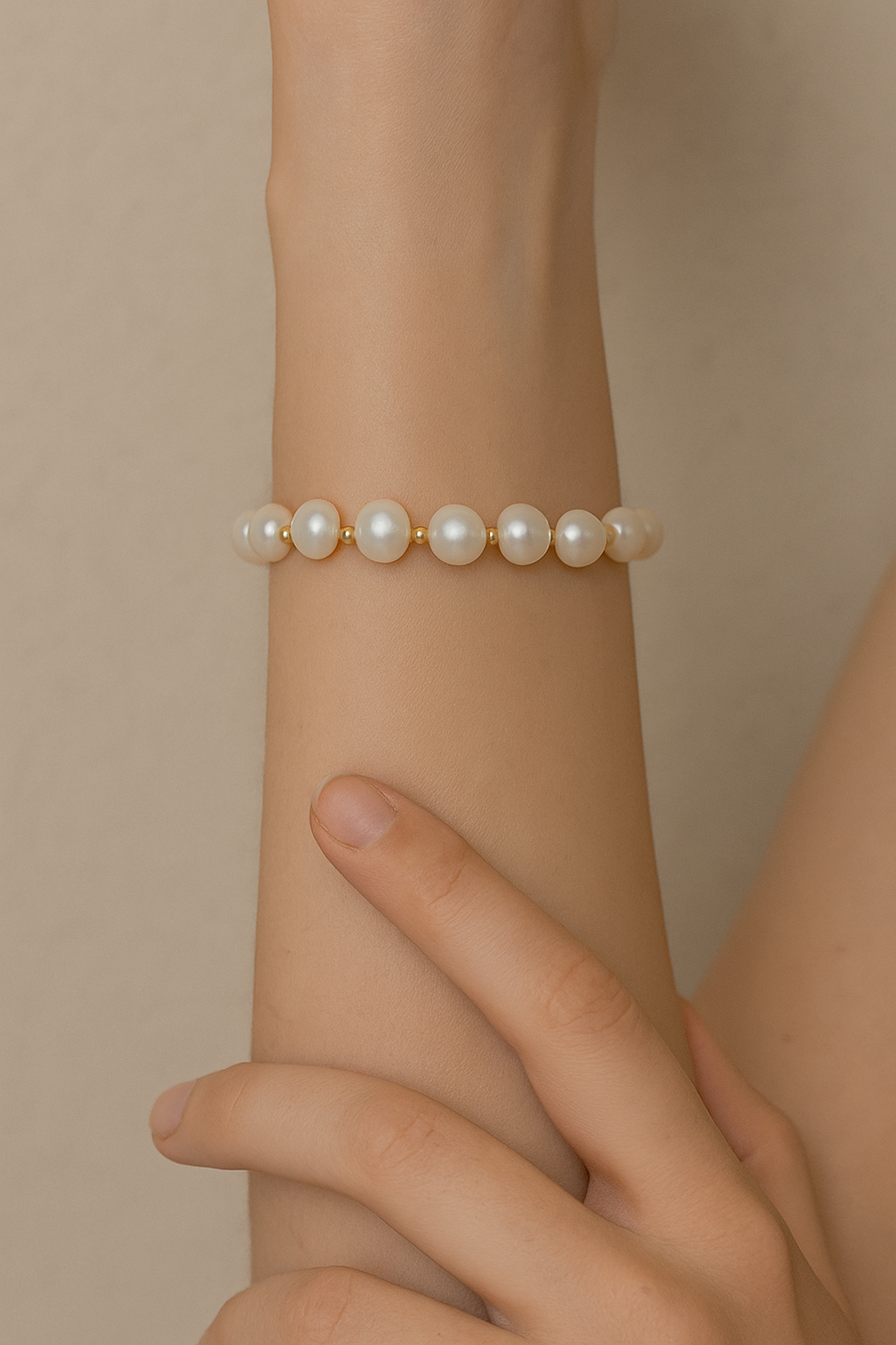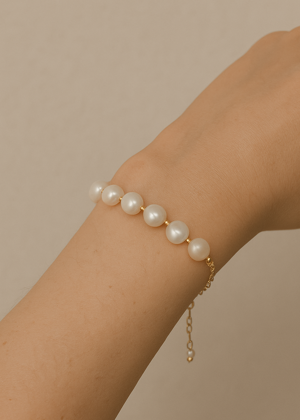 A luminous freshwater pearl meets the warm glow of 14K gold-filled beads in this exquisite bracelet—a piece that whispers of quiet confidence and enduring grace. Handcrafted with meticulous attention to detail, each element is thoughtfully placed to create a harmonious balance between organic beauty and refined luxury. This is more than an accessory; it's a symbol of wisdom, purity, and the gentle strength that comes from within.